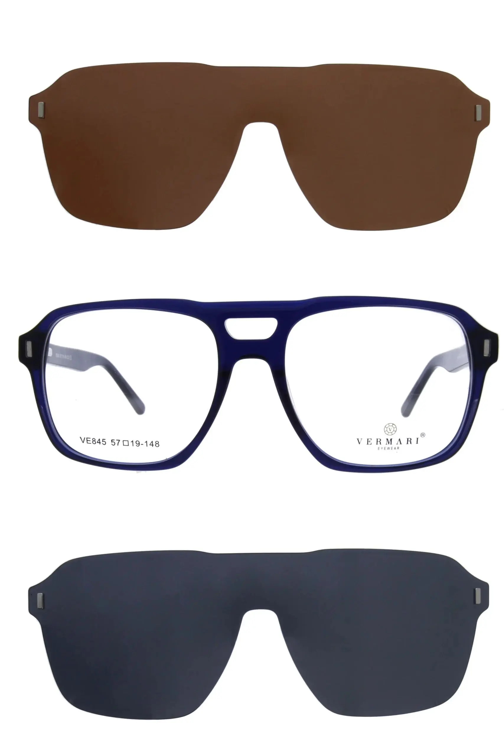 Faceți cunoștință cu ochelarii CLIP-ON Ochelari de corecție cu atașamente de soare VE845 C3 de la Vermari. Modelul CLIP-ON Ochelari de corecție cu atașamente de soare VE845 C3 îmbină stilul atemporal cu cea mai înaltă calitate a materialelor. Vermari sunt ochelari pentru cei care apreciază confortul și eleganța.