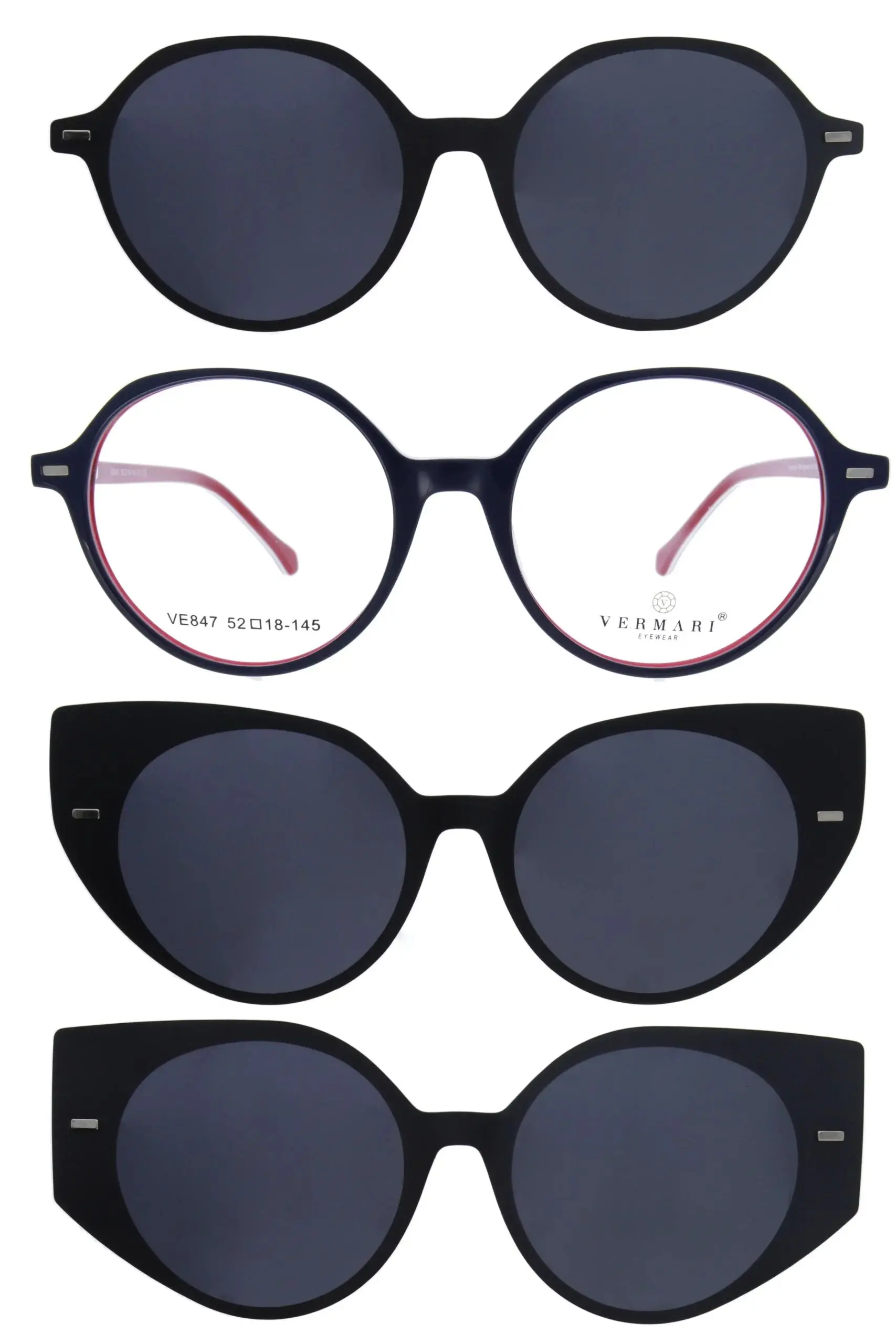 Faceți cunoștință cu ochelarii CLIP-ON Ochelari de corecție cu atașamente de soare VE847 C3 de la Vermari. Modelul CLIP-ON Ochelari de corecție cu atașamente de soare VE847 C3 îmbină stilul atemporal cu cea mai înaltă calitate a materialelor. Vermari sunt ochelari pentru cei care apreciază confortul și eleganța.
