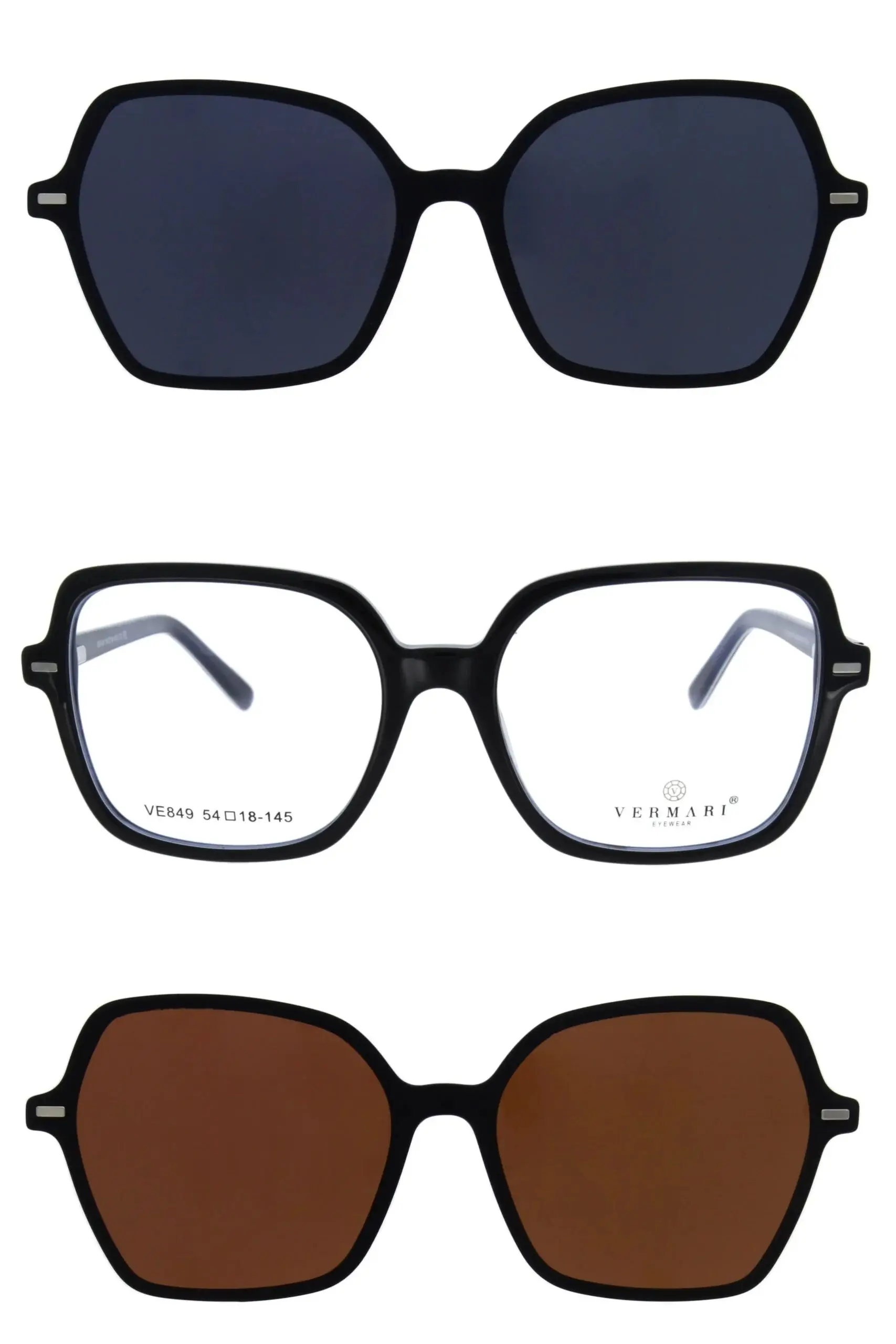 Faceți cunoștință cu ochelarii CLIP-ON Ochelari de corecție cu atașamente de soare VE849 C3 de la Vermari. Modelul CLIP-ON Ochelari de corecție cu atașamente de soare VE849 C3 îmbină stilul atemporal cu cea mai înaltă calitate a materialelor. Vermari sunt ochelari pentru cei care apreciază confortul și eleganța.