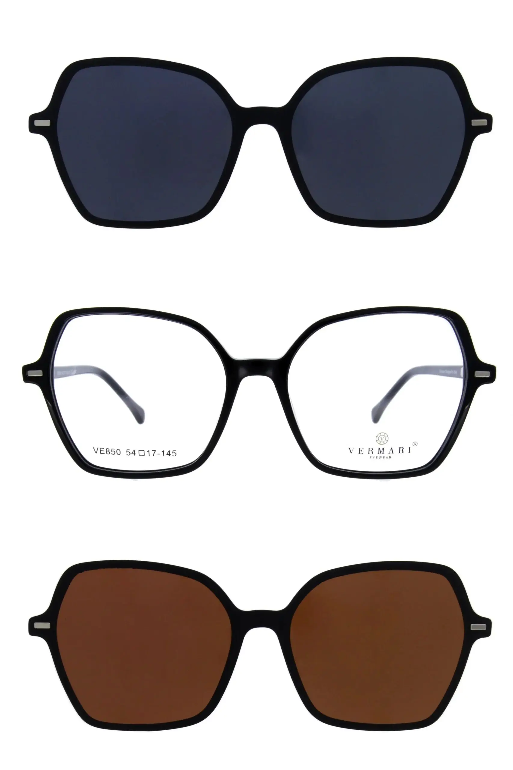 Faceți cunoștință cu ochelarii CLIP-ON Ochelari de corecție cu atașamente de soare VE850 C1 de la Vermari. Modelul CLIP-ON Ochelari de corecție cu atașamente de soare VE850 C1 îmbină stilul atemporal cu cea mai înaltă calitate a materialelor. Vermari sunt ochelari pentru cei care apreciază confortul și eleganța.