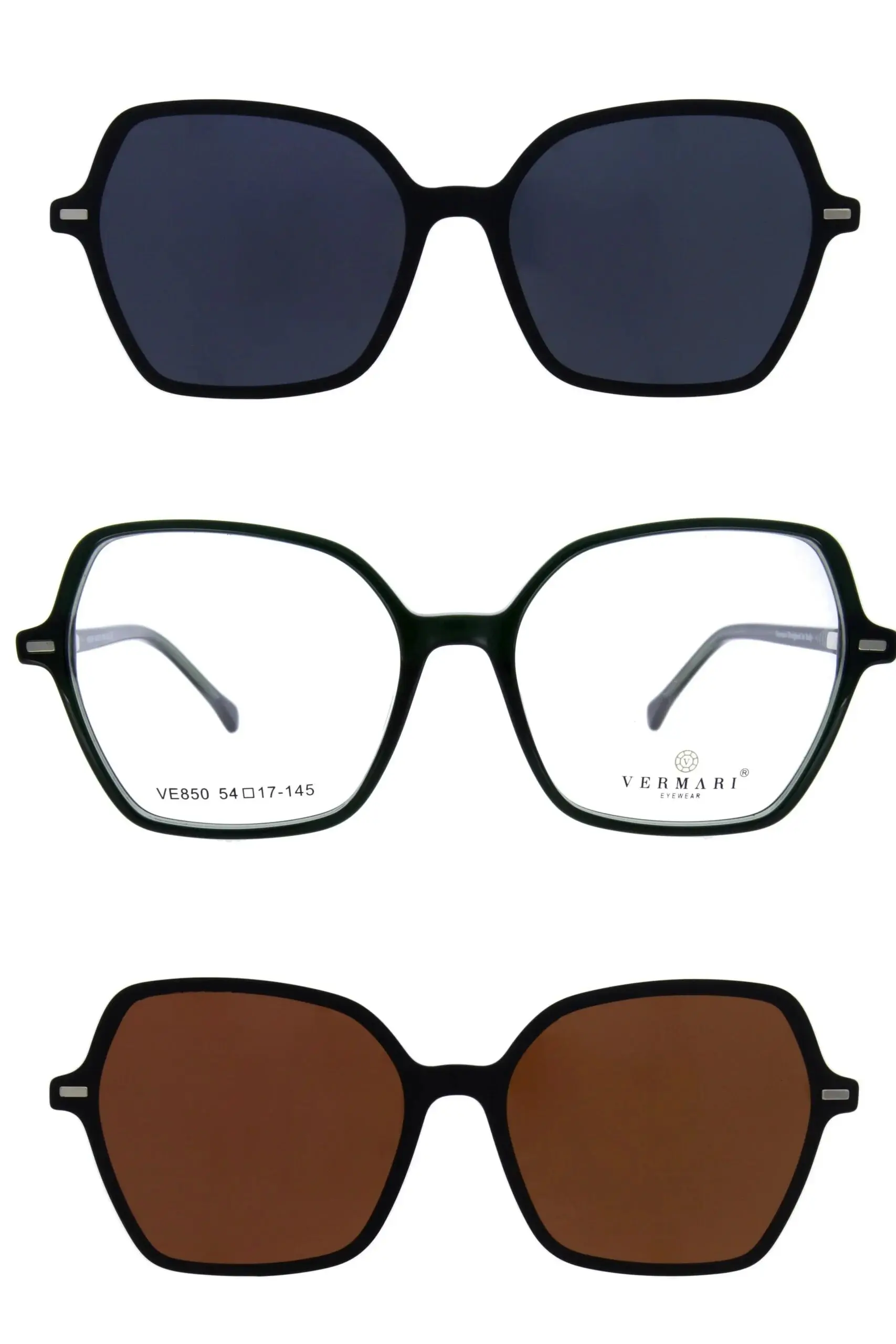 Faceți cunoștință cu ochelarii CLIP-ON Ochelari de corecție cu atașamente de soare VE850 C2 de la Vermari. Modelul CLIP-ON Ochelari de corecție cu atașamente de soare VE850 C2 îmbină stilul atemporal cu cea mai înaltă calitate a materialelor. Vermari sunt ochelari pentru cei care apreciază confortul și eleganța.